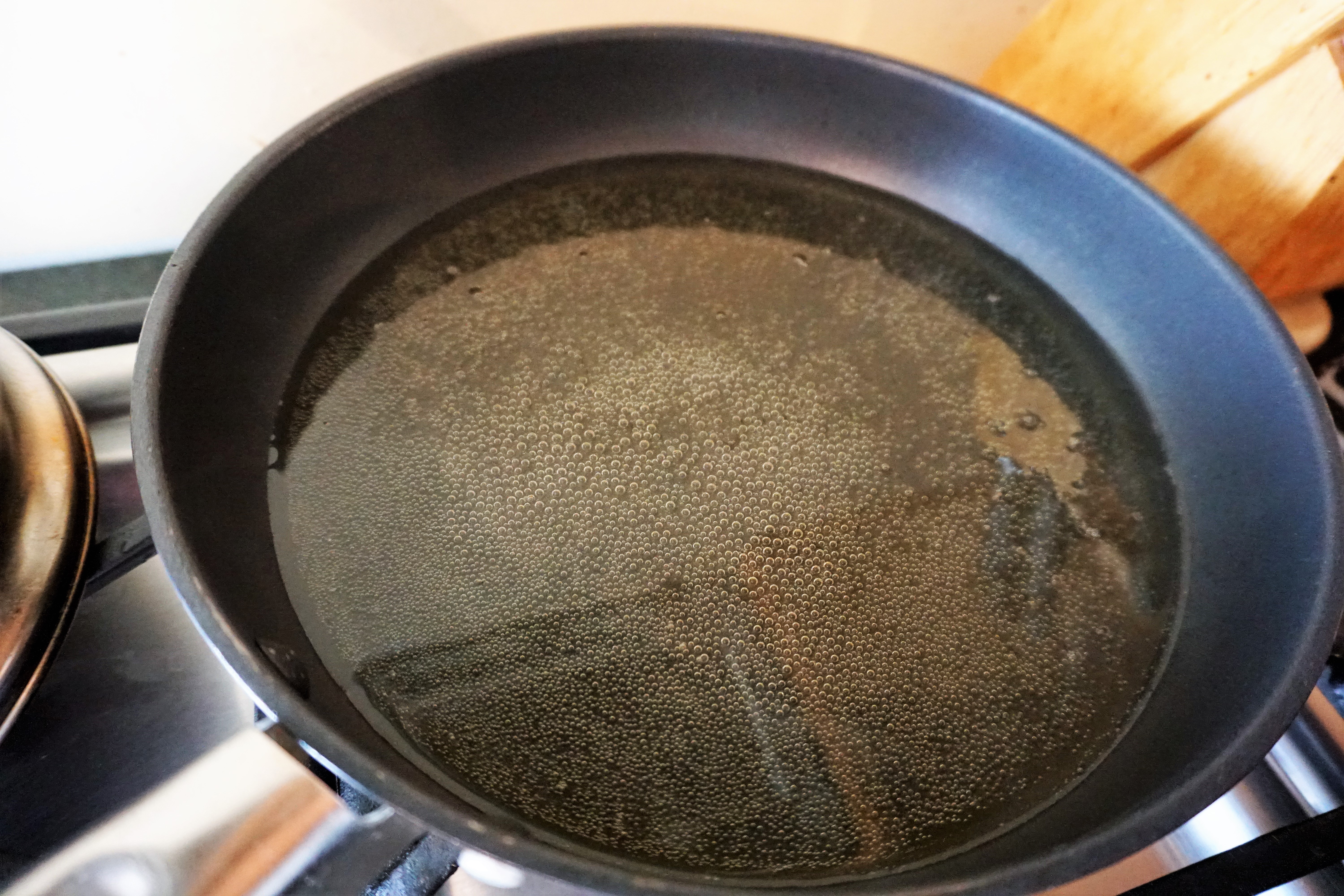 Place the fillets seasoning side down when the pan is nice and hot. Just listen to that sizzle!