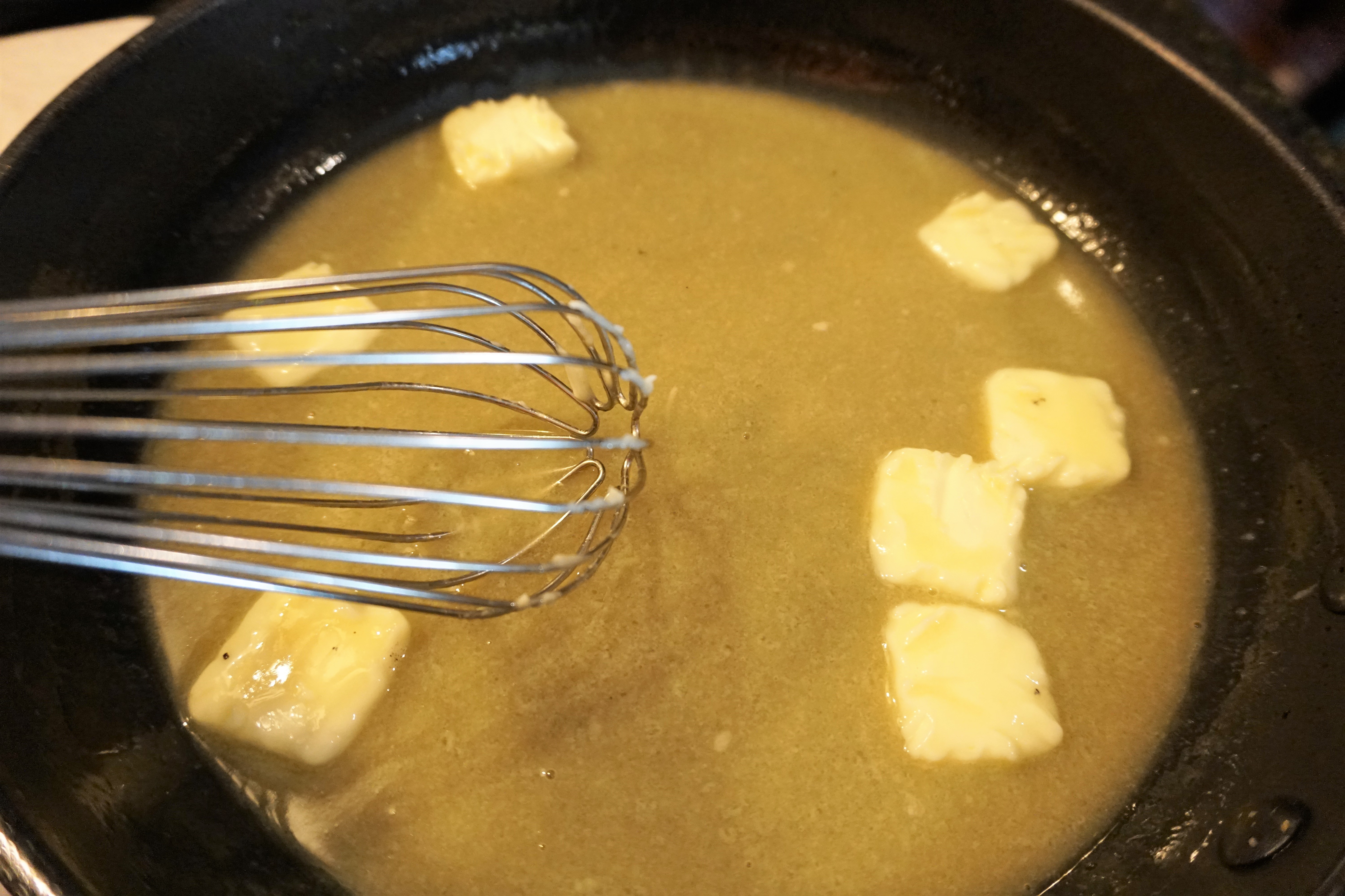 The reason it’s important to remove the pan from the heat is that if the butter melts too quickly, the fats and solids will separate and the sauce will be greasy rather than smooth