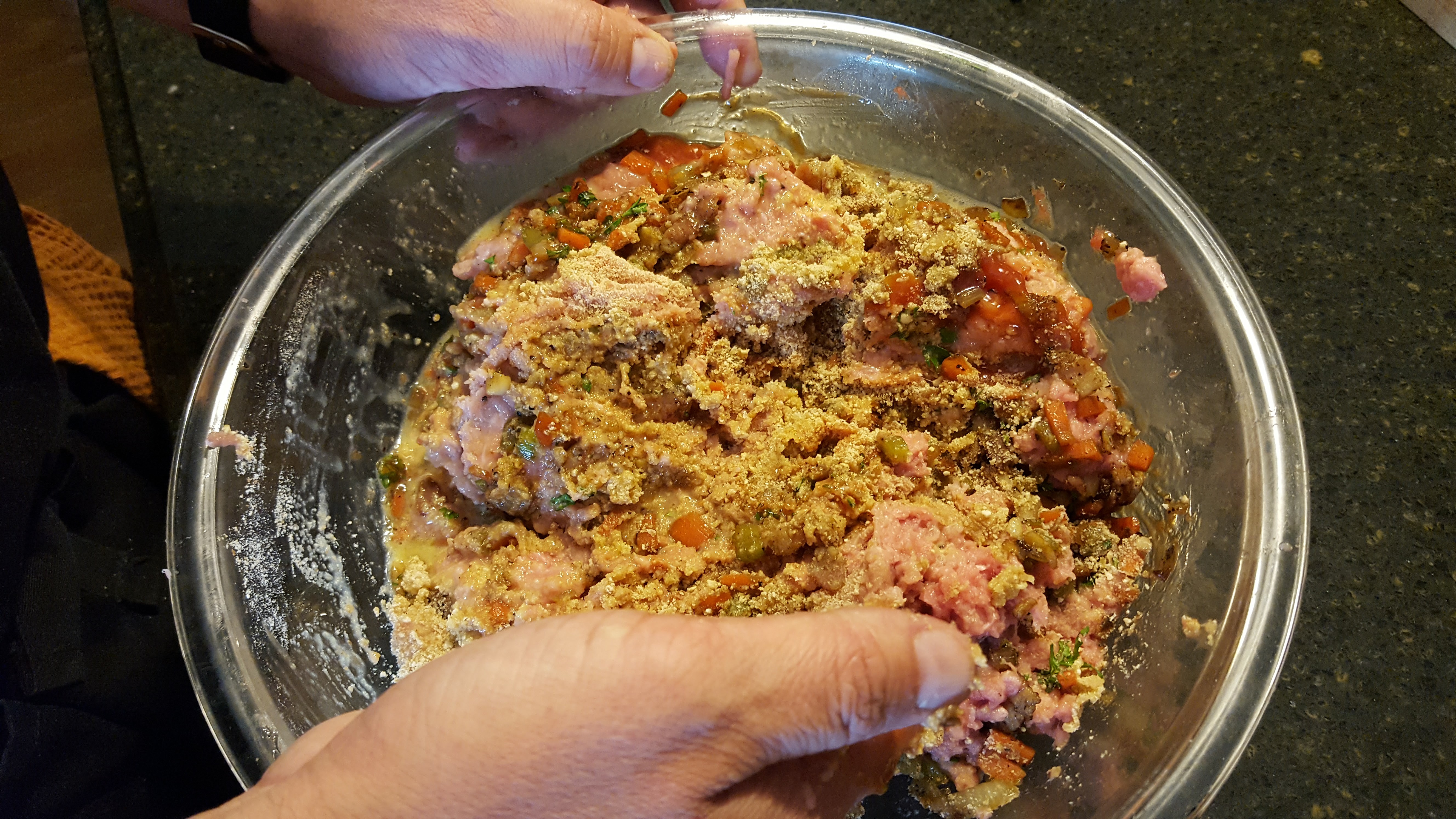 We have 3 pounds of ground turkey, you can basically use what you want in meatloaf, ground beef, pork, veal, turkey, chicken or a combination of meats