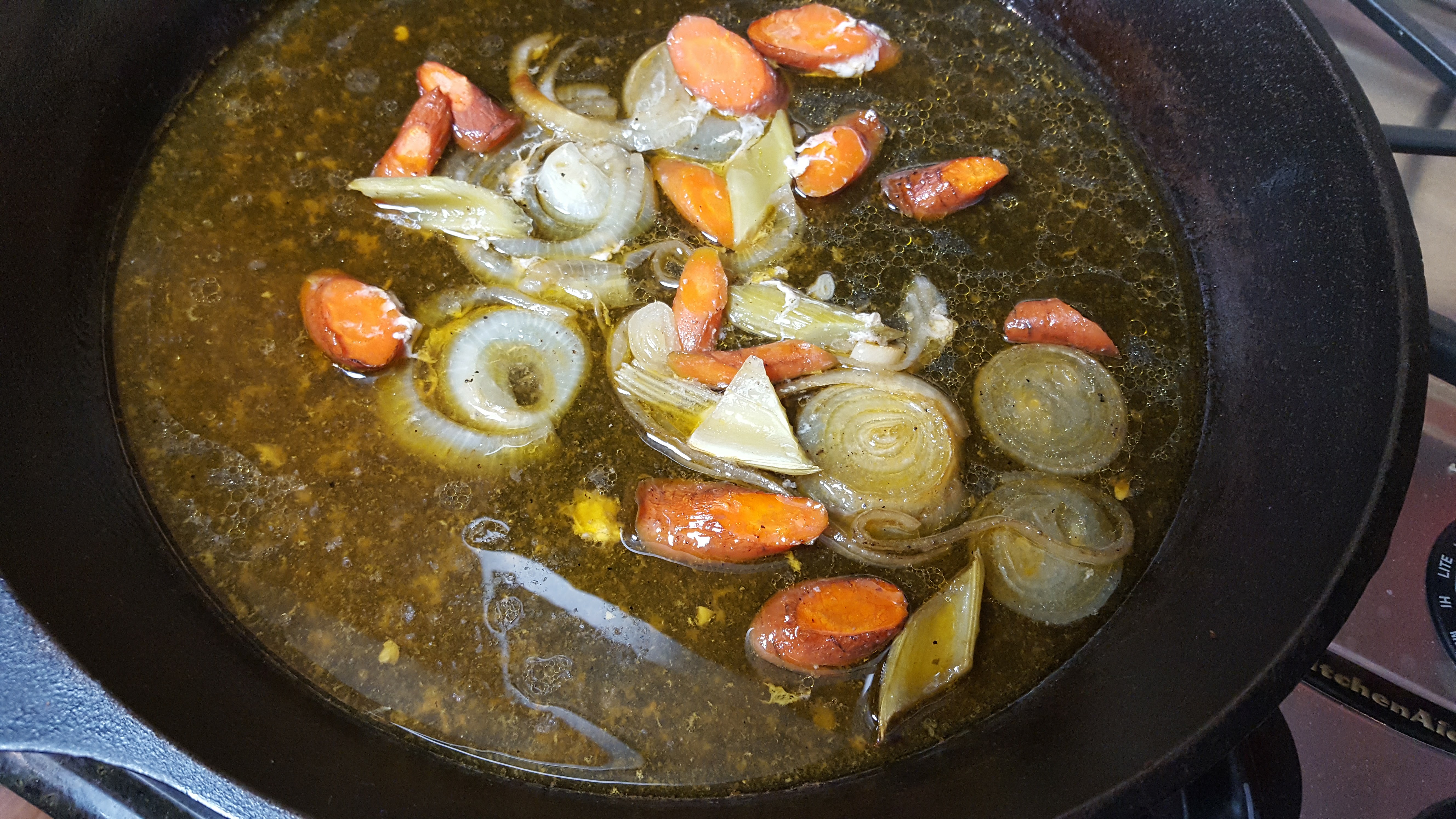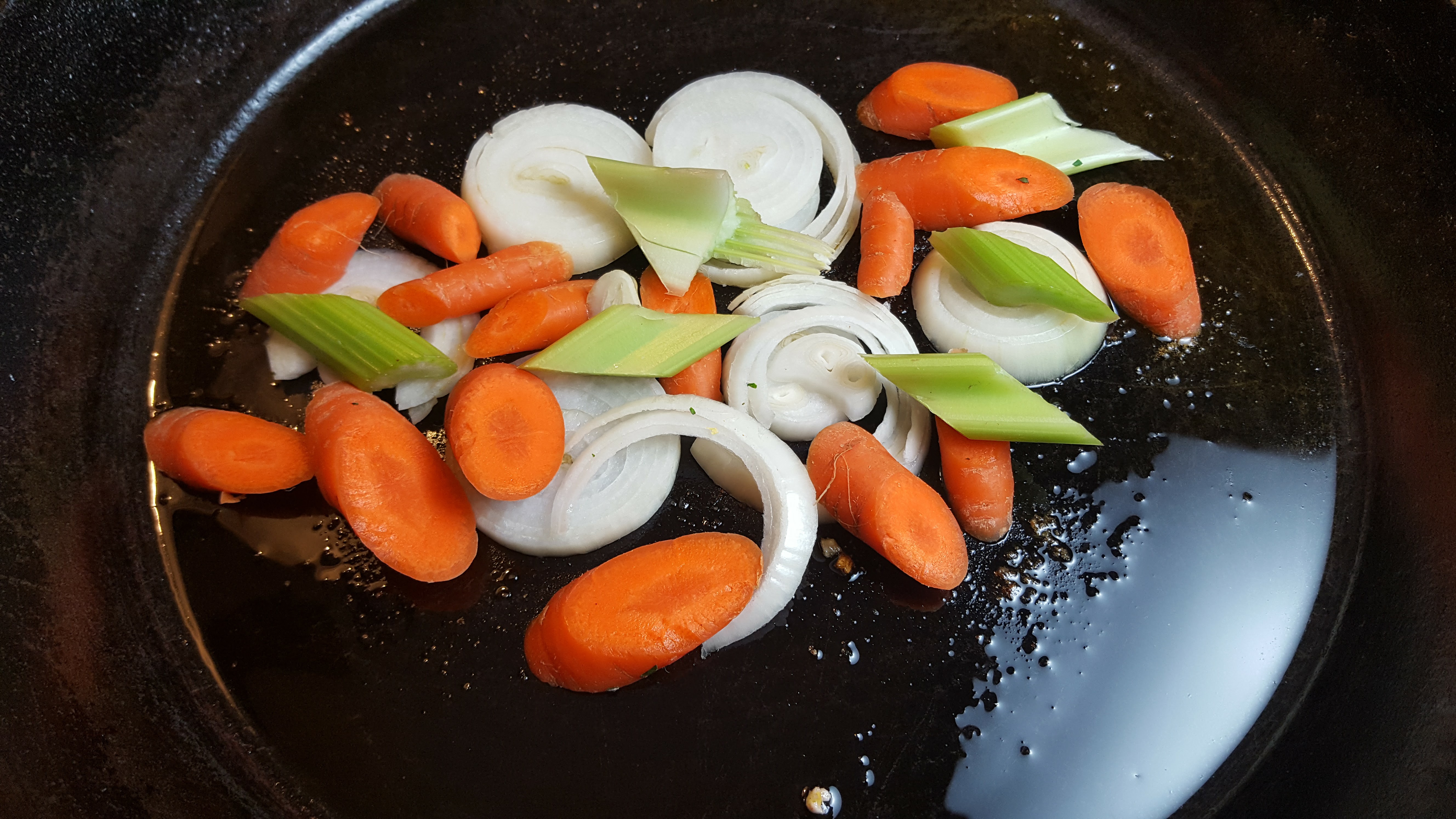 You can slice the carrots without peeling as we are using the veggies for flavor and discarding afterwards