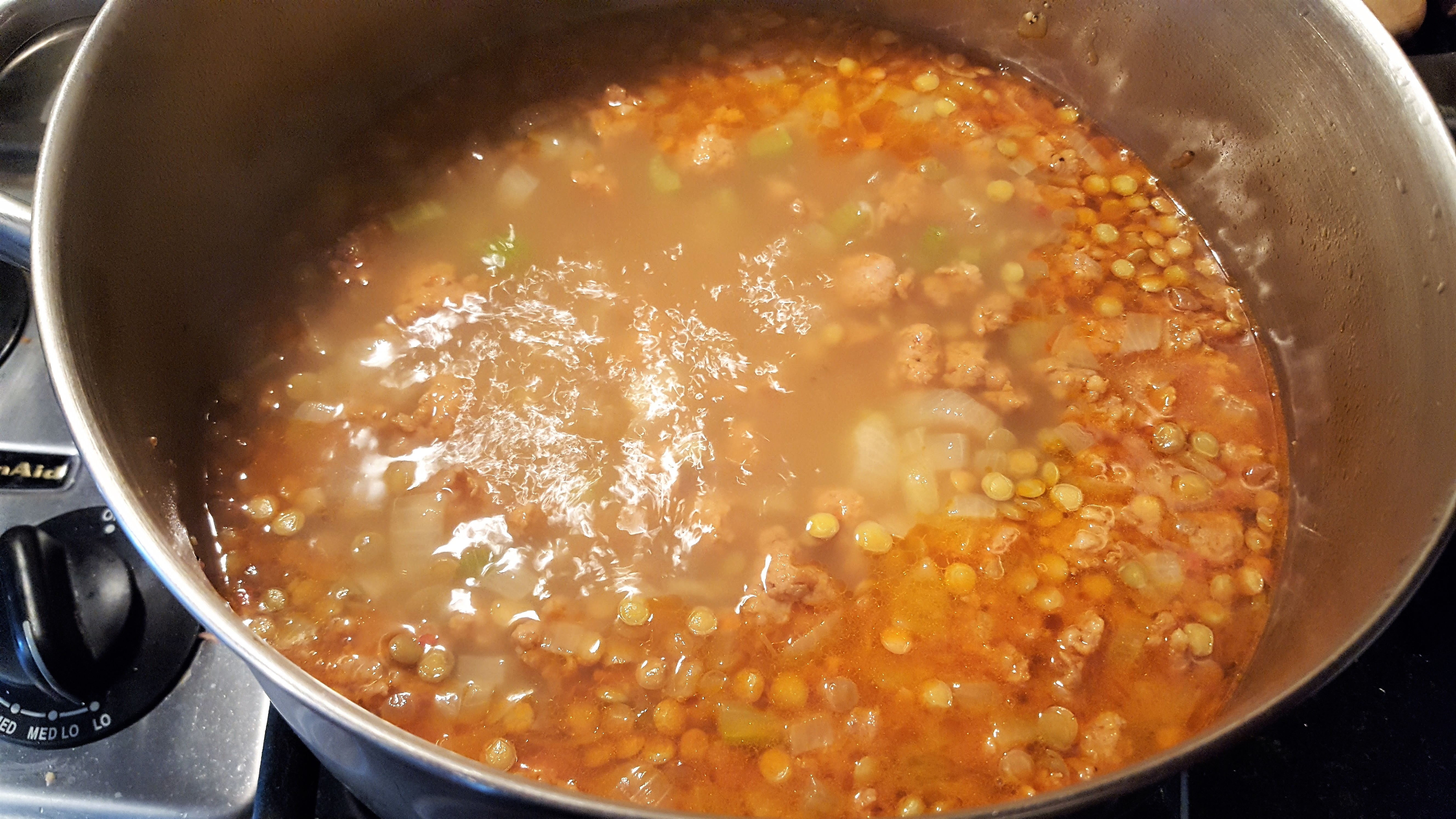 Cut 2 cups of leftover beef into cubes and add to pot along with the beef stock. Give a stir