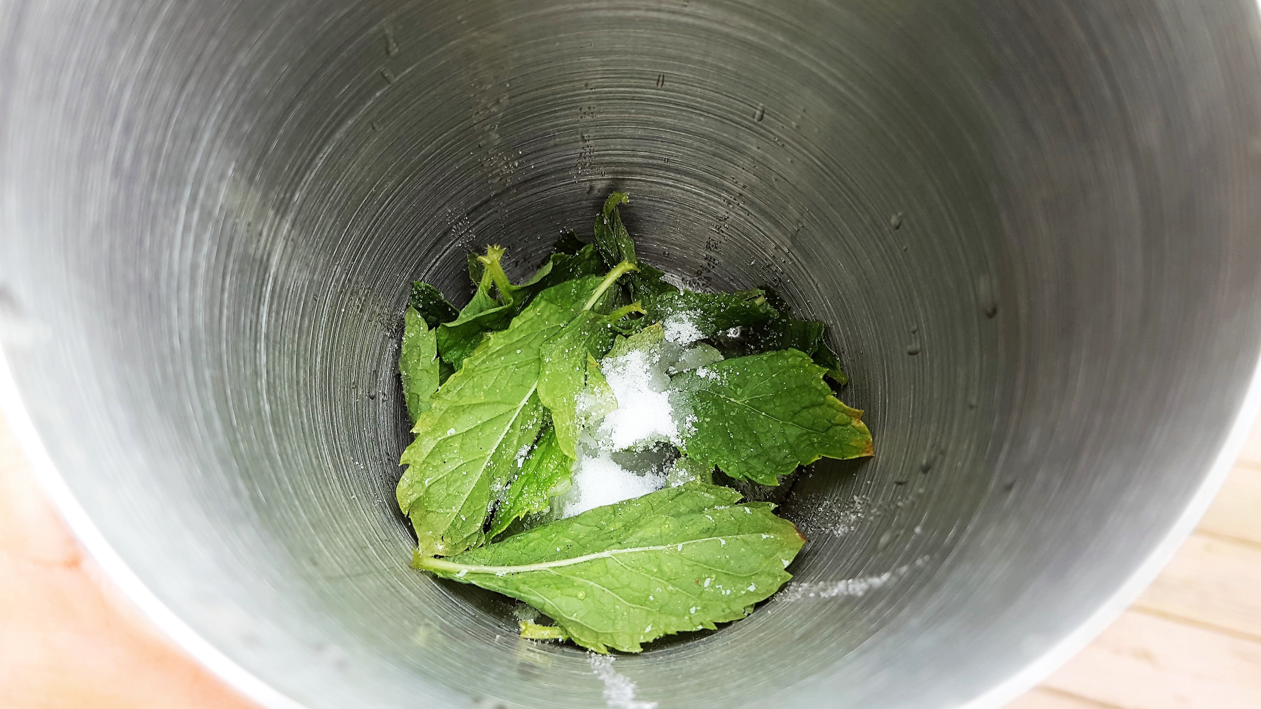 For each drink, you’ll need 2 ounces of white rum, one teaspoon of superfine sugar, a small bunch of fresh mint and 3 lime wedges