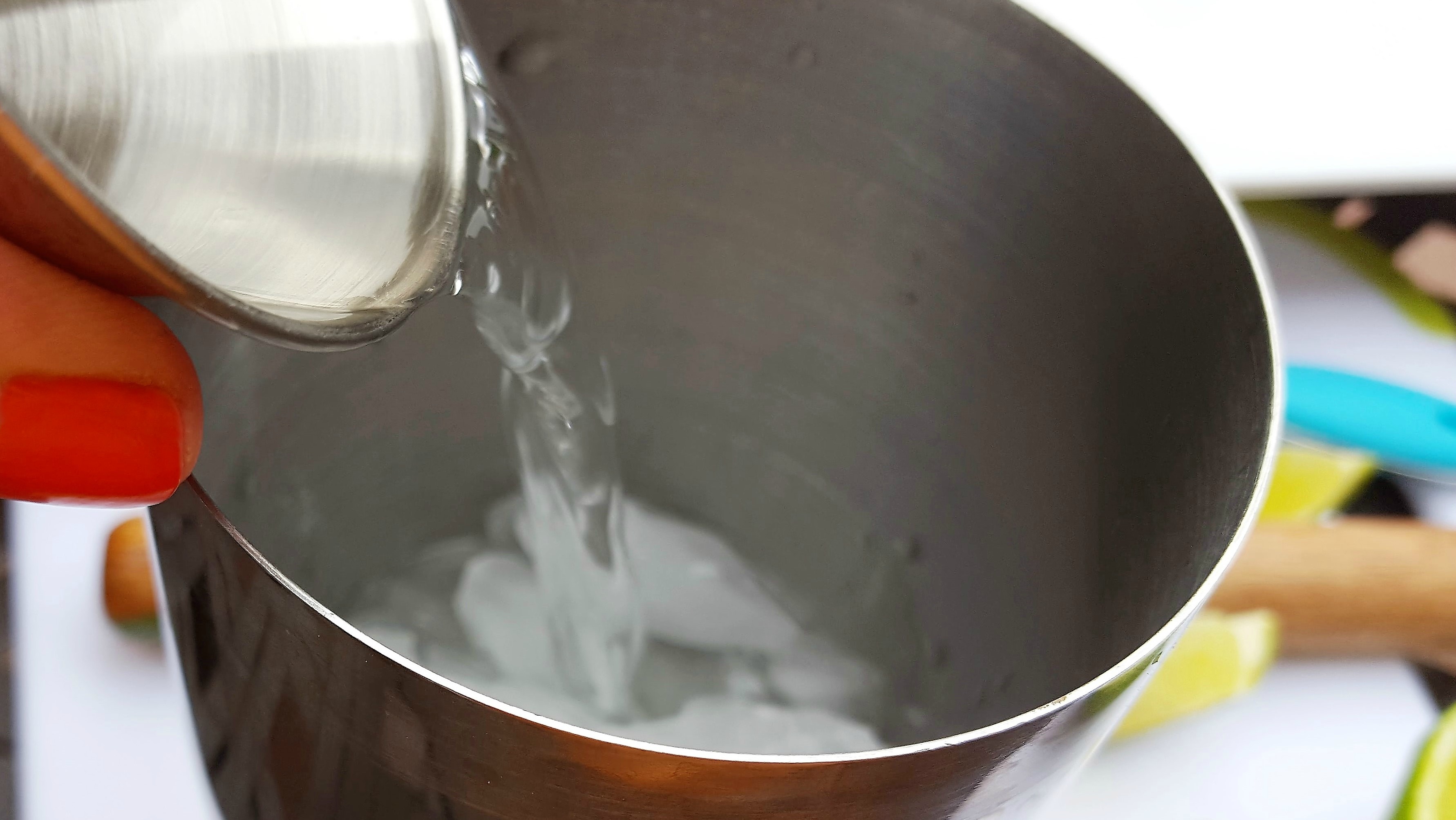Add in some crushed ice and the white rum. Shake it baby!