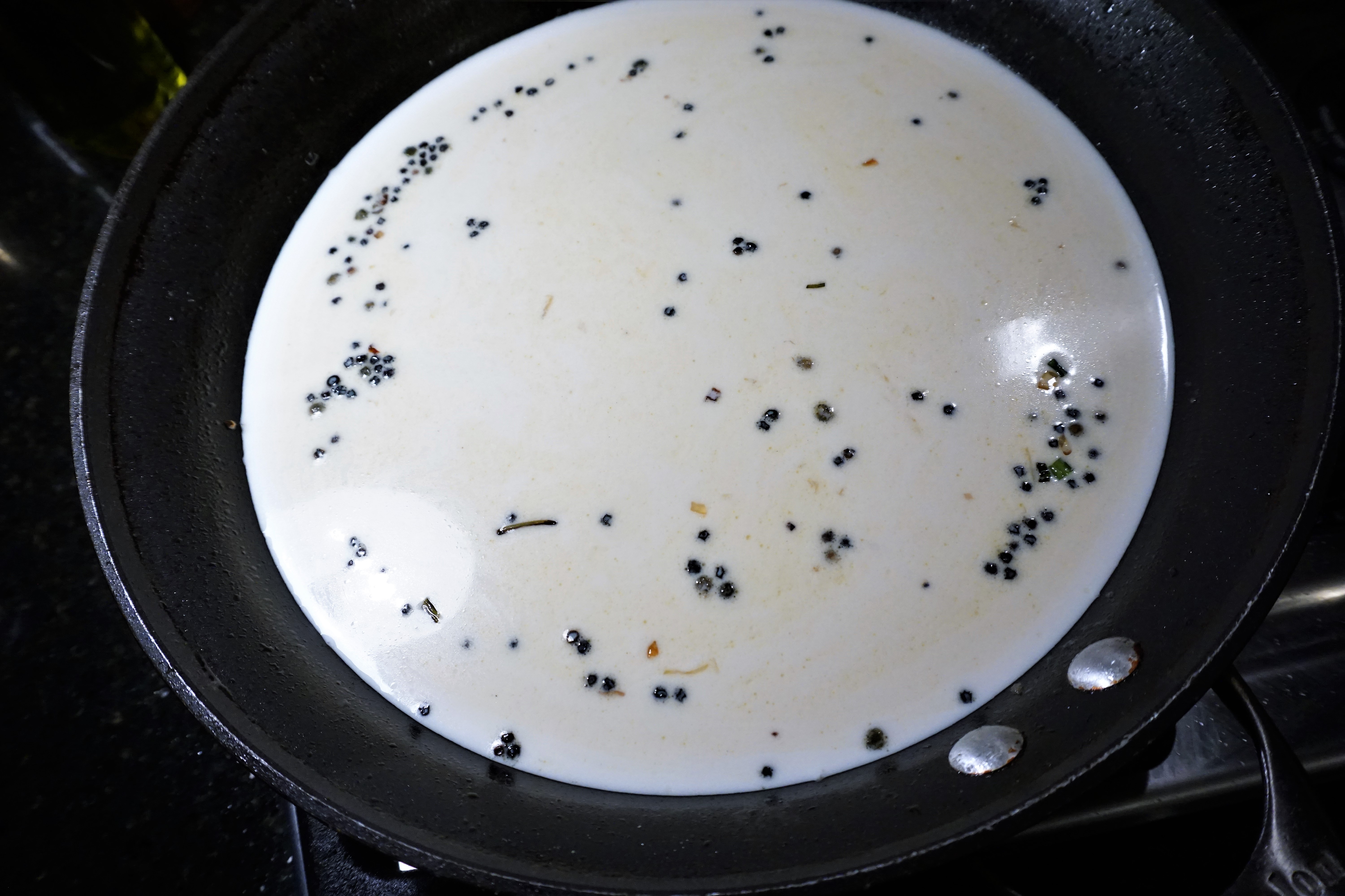 Once this step is done, place the pan back onto the heat and add in the heavy cream, stirring to incorporate